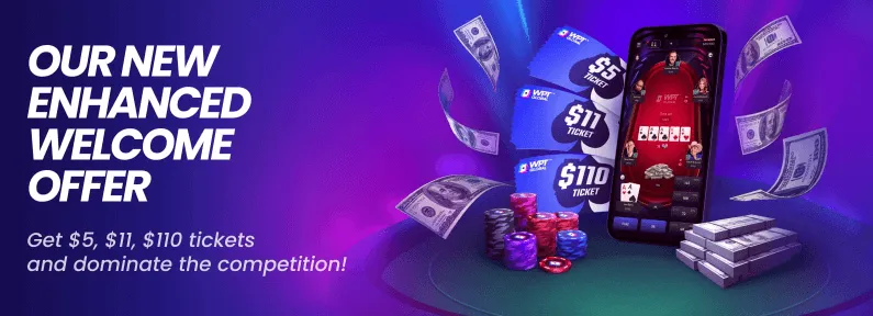 WPT Global’s generous welcome offer now includes free tickets for our new Sunday tournaments, adding incredible value for new players.