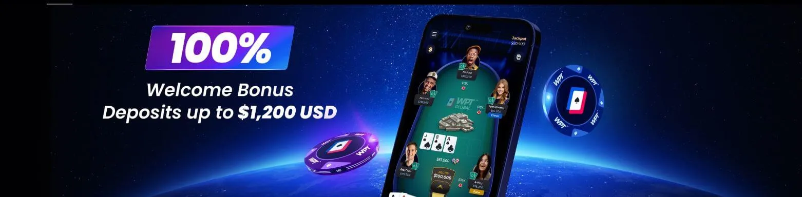 WPT Global does not charge any fees for deposits. You can make deposits to claim a generous welcome bonus offer worth up to $1,200 by making your first deposit into your WPT Global account.