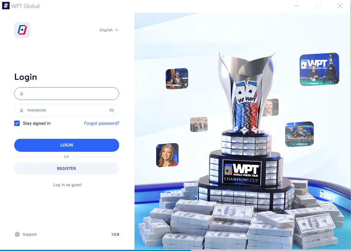 Once you have registered an account, all you need to do for the WPT Global login is to enter your username and password.