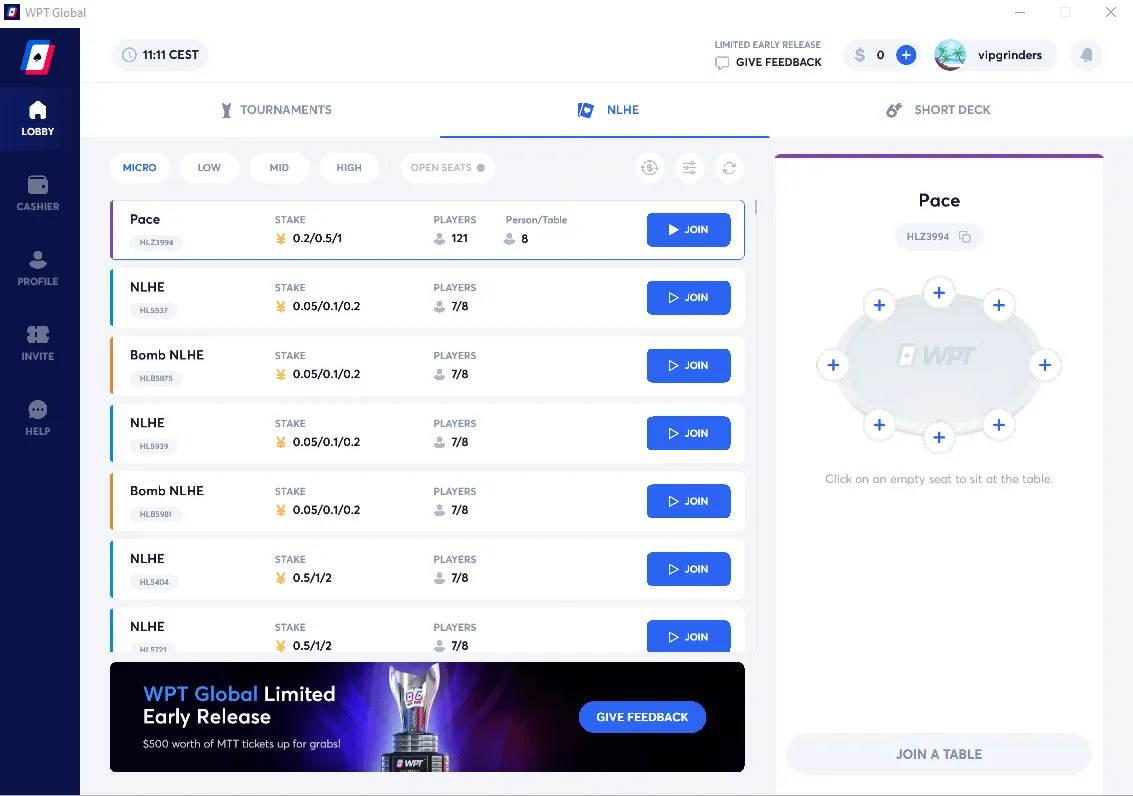 Please make sure to submit your WPT Global nickname & registered email to participate in our VIP-Grinders promotions.