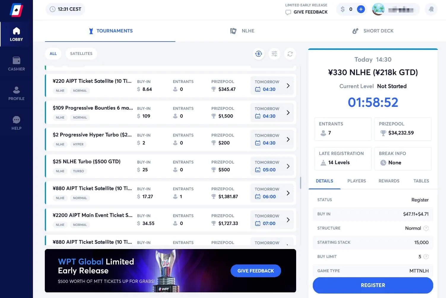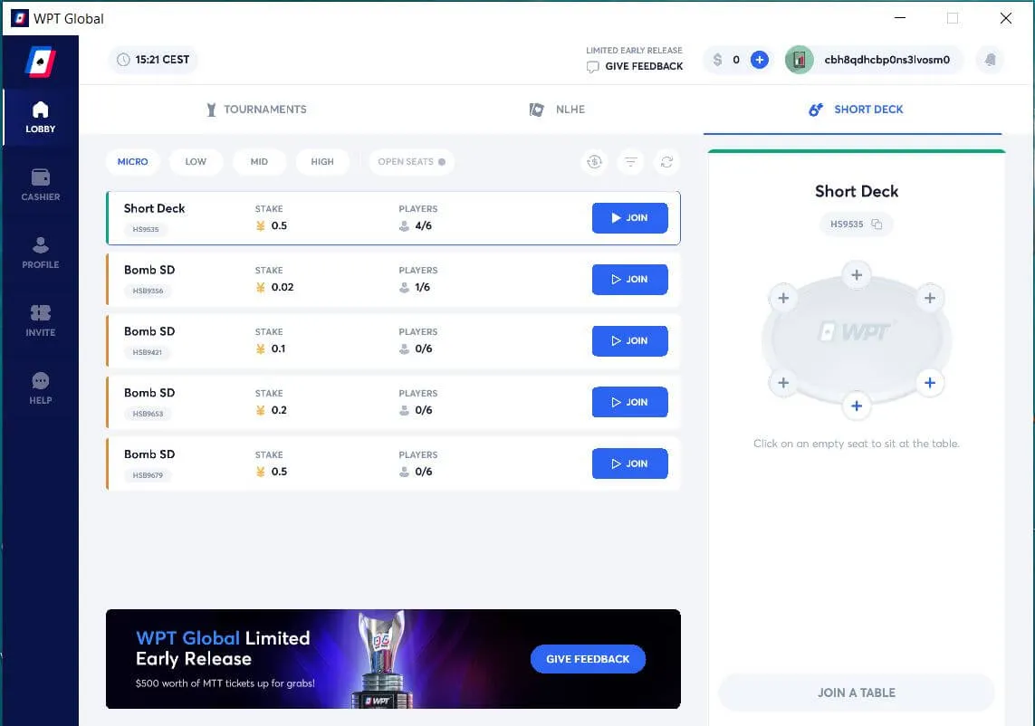 WPT Global Review Poker Lobby