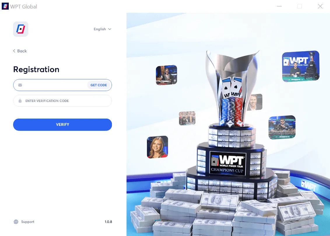 Once you have downloaded the WPT Global poker client, please enter and verify your email address in the below window: