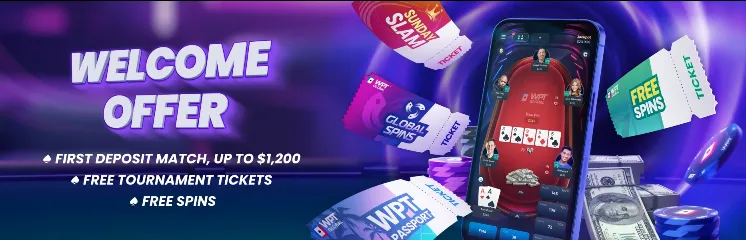Whether you’re new or already a customer at WPT Global, there are a ton of deposit offers you won’t want to miss. The welcome package has been beefed up to now include free tournament entries for the WPT World Championship satellites. Deposit more than $20 and get 4 free $5 entries for these satellites, plus a 100% bonus on your deposit up to $1,200. Deposit more than $300 and you’ll get a $110 entry for the Sunday Slam and a $22 satellite entry for the WPT World Championship. And if you deposit more than $1,200, you’ll get a $220 satellite entry for the WPT World Championship.