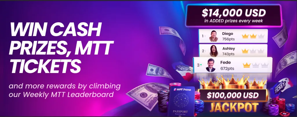 Take your tournament play to new levels with the weekly leaderboards. Win in daily tournaments and climb the leaderboards for cash prizes and tickets to the Sunday Major Tournaments. Plus, win all three Sunday Majors within a 22-day period and become the Triple Crown champion with a $100,000 jackpot. There are multiple ways to enter, from deposits to accumulated points, and prizes for the top 100 on the main leaderboard and the top 5 on the high roller leaderboard.